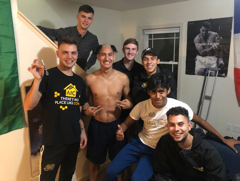 Moment assez fun après où mon teammate Jason avait décidé de se faire couper les cheveux par nous, bien entendu ça a un peu dérivé je vous laisse voir le avant/après, évidemment Coach Mayo lui a dit de couper ça avant les championnats de conférence!! c'était très drôle!! il a donc fini chauve!!